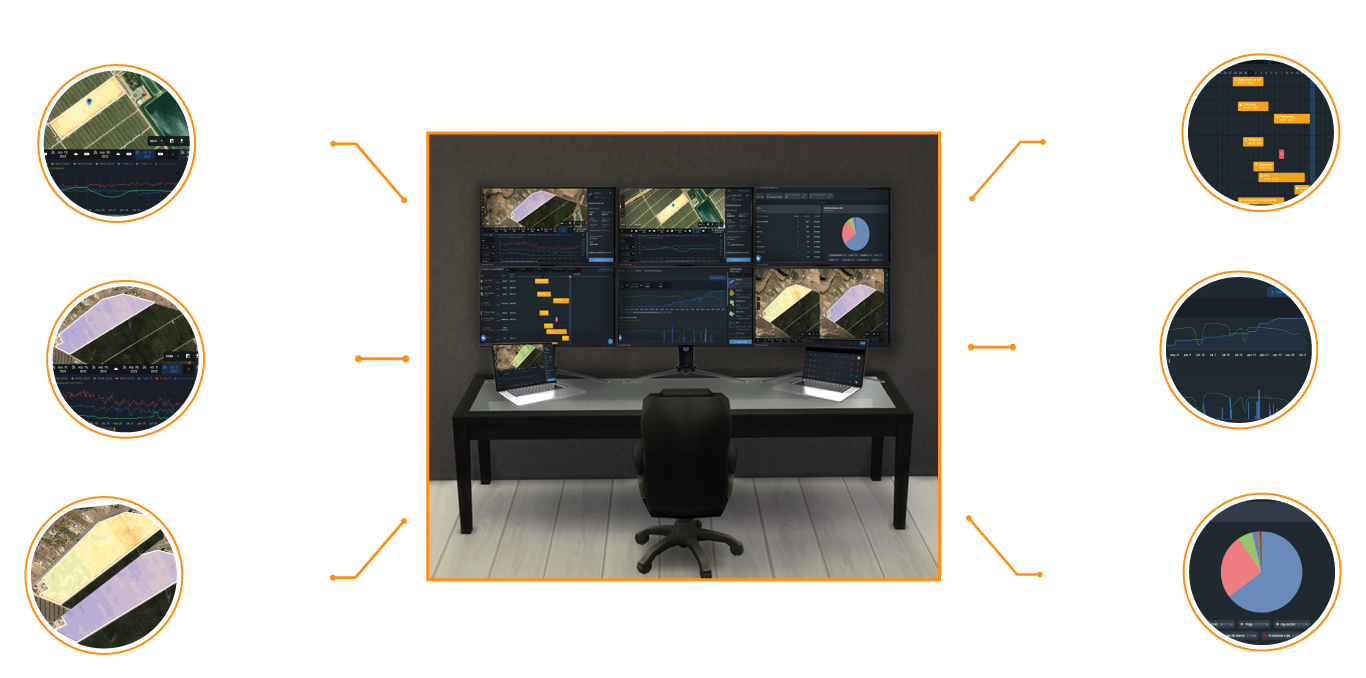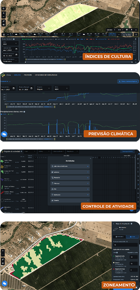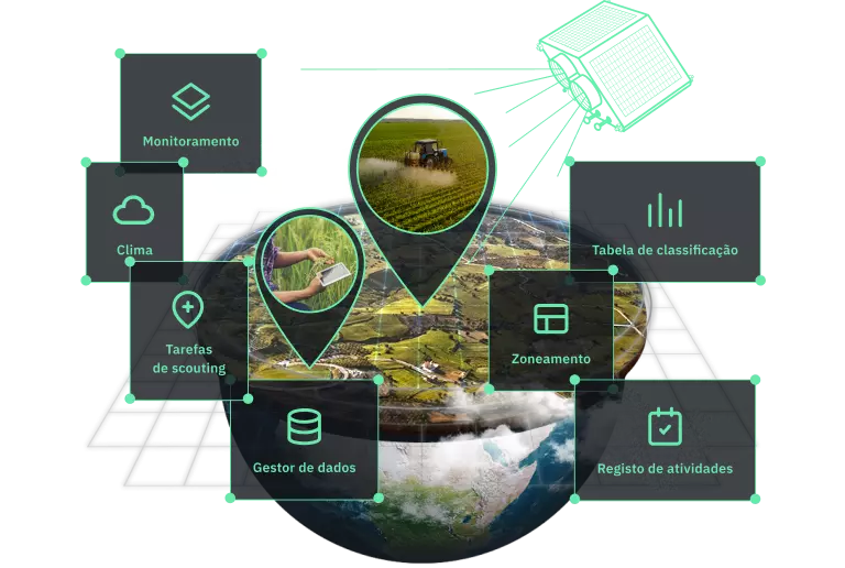 Utilizando imagens de satélite, ajudamos os agricultores a gerir vários campos, reduzir custos, otimizar recursos e tomar decisões. Esta tecnologia permite, por exemplo, a medição e controlo do stress hídrico e a monitorização de pragas.