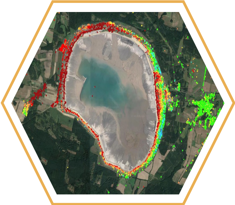 Servicio satelital SAR de interferometría, el cual permite identificar asentamientos o desplazamientos con una precisión milimétrica.